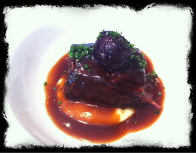| Carne (opción 1): Canelones de ternera asada rellenos de morcilla y setos con espuma de mantequilla |